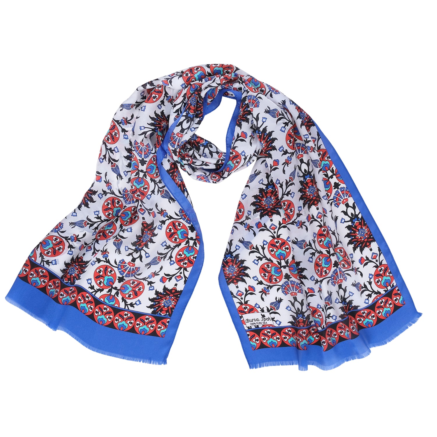 Inspired by Turkish mosaic art, this scarf presents a geometric symphony of sophistication. The blend of Blue & Orange creates a timeless fashion statement, suitable for any age and occasion.