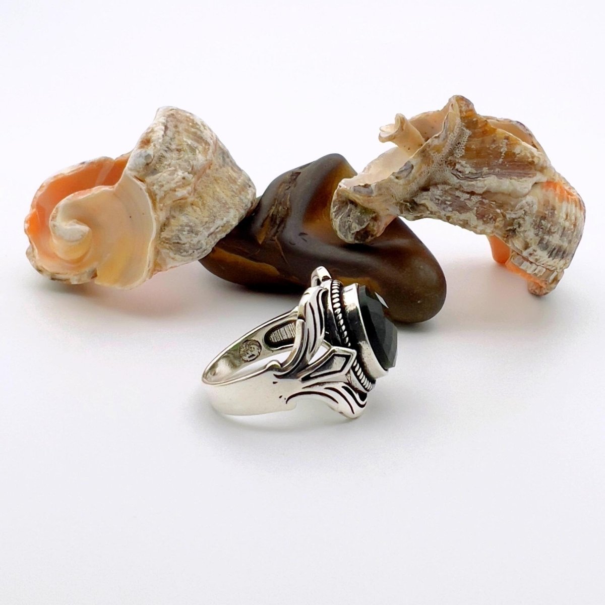 Unisex Green Emerald Silver Ring