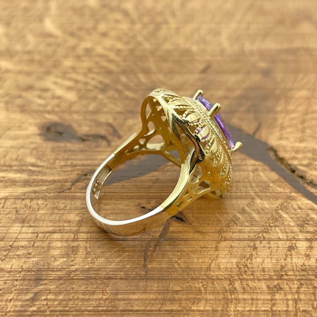 Elevate your style with this Women Amethyst 925K Silver Ring. The stunning purple stone adds a touch of elegance and sophistication to any outfit. Handcrafted to perfection, this ring is made with 925 sterling silver for exceptional quality and durability.