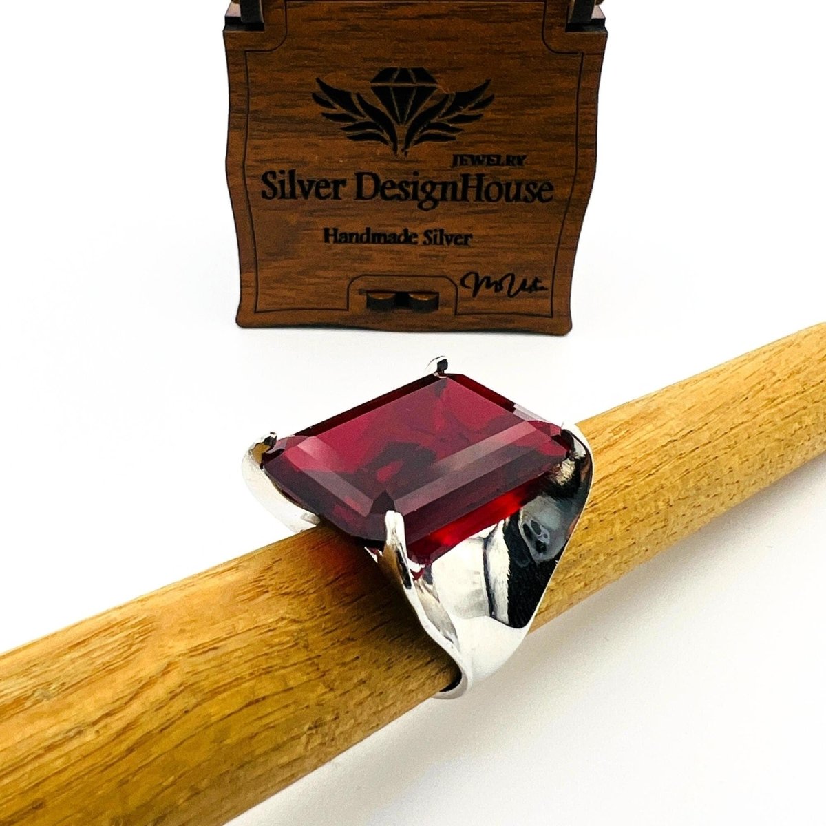 Women's Big Ruby Stone Silver Ring